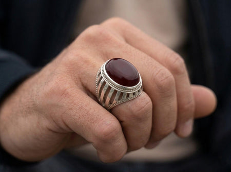Bague en Aqeeq rouge - Homme